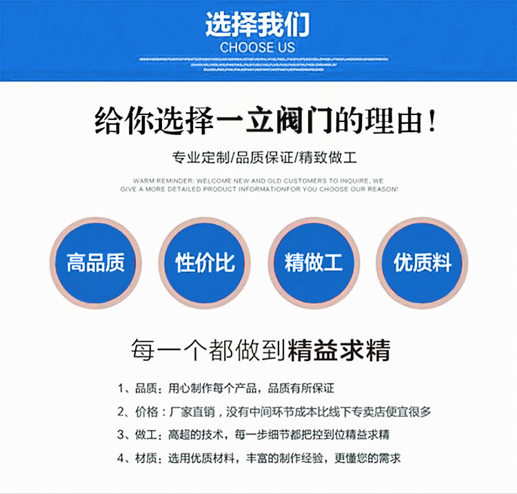 尊敬的用户您好:非常感谢您在国内众多阀门厂家选择一立阀门。我们的保证:将已提供最高性价比的阀门产品,给带客户带来更高的效益为已任。