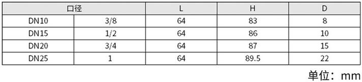 4、规格有1/2"、3/4"、1" 三种,均为外丝扣联接。
