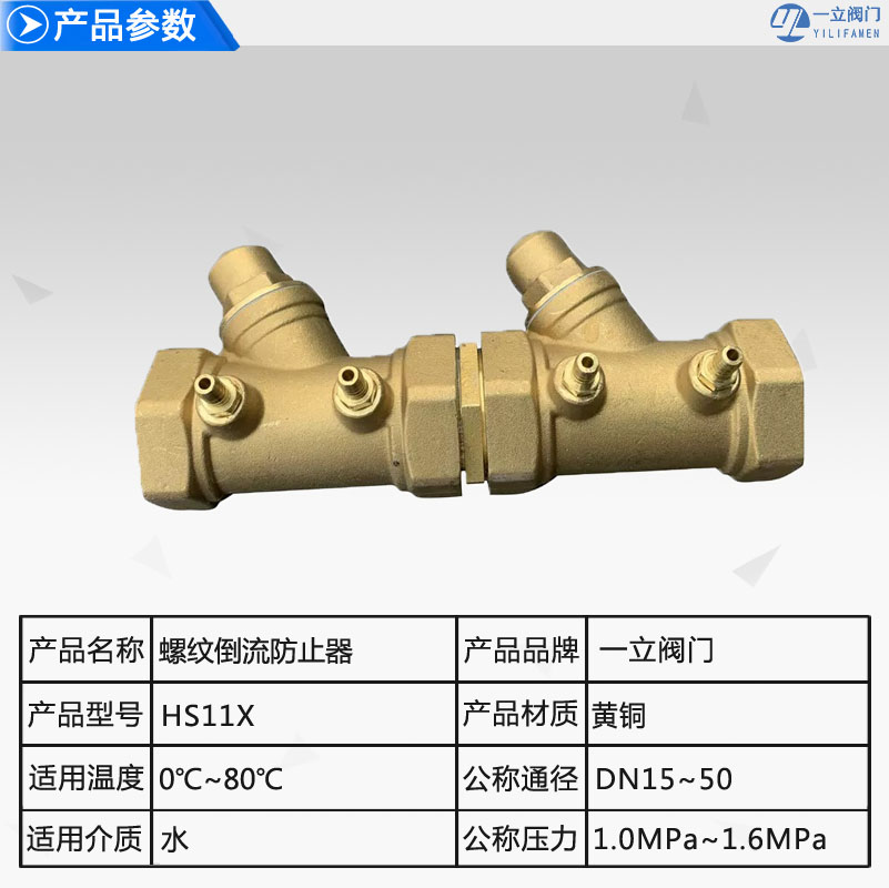 HS11X全铜倒流防止器是我公司根据我国目前的供水管网,尤其是生活饮用水管网因回流污染严重又无有效防止回流污染装置的情况下,吸收国外先进技术研制而成的,防止了管道中的回流污染,是我公司的新型水力控制阀门。它采用独特的结构型式,经过严谨科学的设计计算,辅以精心制造,能彻底防止任何情况下的倒流污染,从而确保了生活饮用水和生产工艺流程的卫生及安全。技术参数: