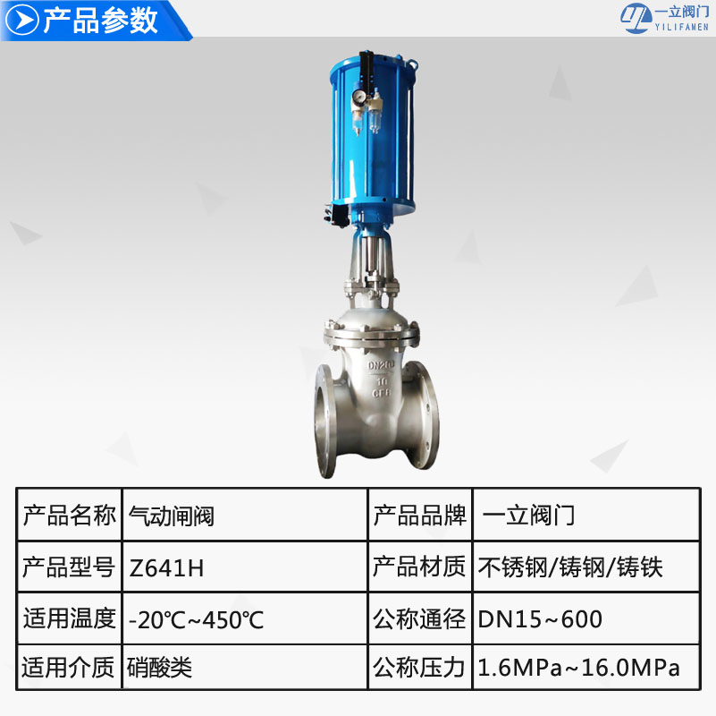Z641H气动闸阀广泛适用于石油、化工、水力、火力发电厂等油品、水蒸气管路上作接通或截断管路中介质的启闭装置。适用于公称压力PN1.6~16.0MPa,工作温度≤-29℃~550℃的管路系统上,作为切断或接通管路介质。适用介质为:水、油品、蒸气、及酸、碱、氨、尿素、含硫天然气等。