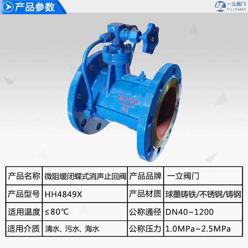 咨询:HH4849X铸铁微阻缓闭蝶式消声止回阀