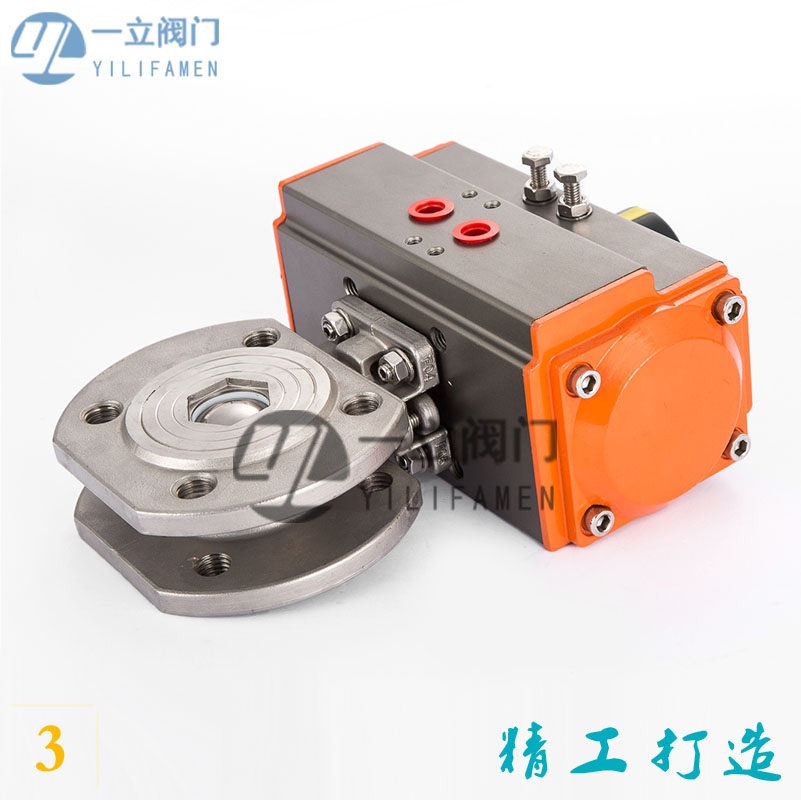 Q671气动球阀由气动双活塞齿轮齿条执行器和超短法兰距球阀组合而成,阀体部分同“1”电动球阀阀体一样。 气动活塞执行机构分有弹簧式和无弹簧式两种。故障下要求阀全开或关闭时配有弹簧式(靠弹簧的恢复张力复位),故障下要求保位时,配无弹簧式。它主要由缸体、弹簧、活塞、活塞杆、前后缸盖、齿条、输出轴等零部件组成。对两位开关阀,需配电磁阀以及行程开关等;对比例式调节阀,需配定位器。阀体采用整体式结构。通过精密的加工和装配,球芯由一端装入后,旋紧压环,使两软密封阀座与球芯保持良好的接触和密封。同时,压环内垫也实现良好的密封,使阀门工作的泄漏为零。由于采用整体式结构的阀体,所以该阀实现了超短法兰距,整机重量大大降低,仅为同类普通球阀的50%左右。