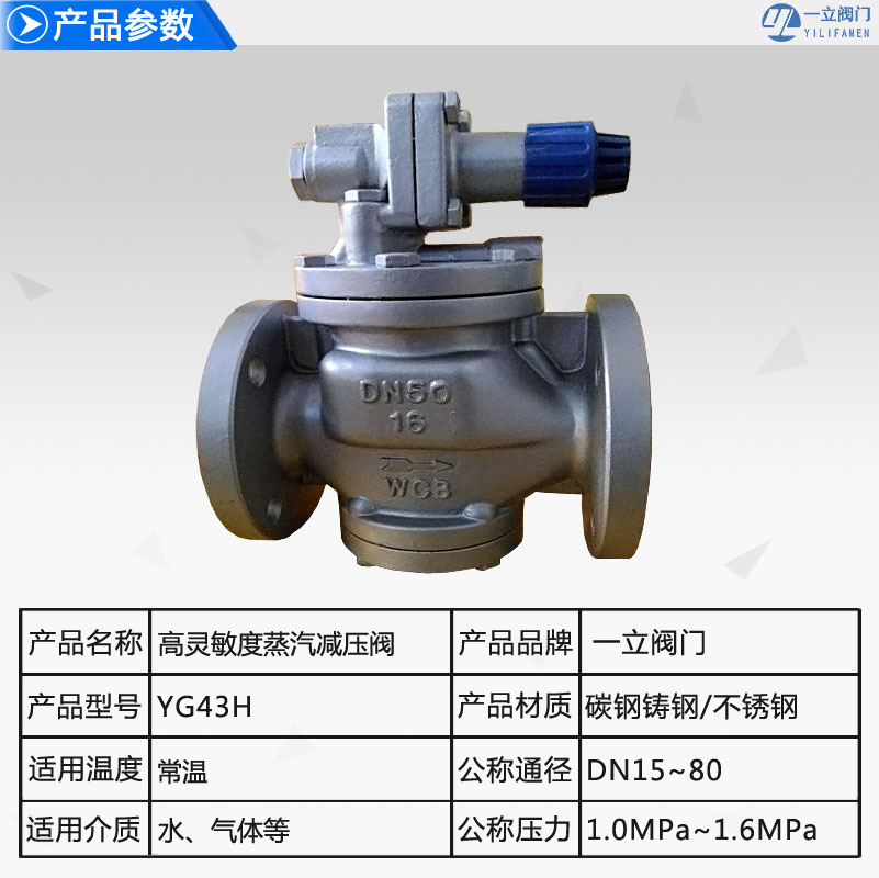 YG43H高灵敏度蒸汽减压阀主要用于蒸汽管路,适用于进口压力变化大,流量变化大的蒸汽管路。
