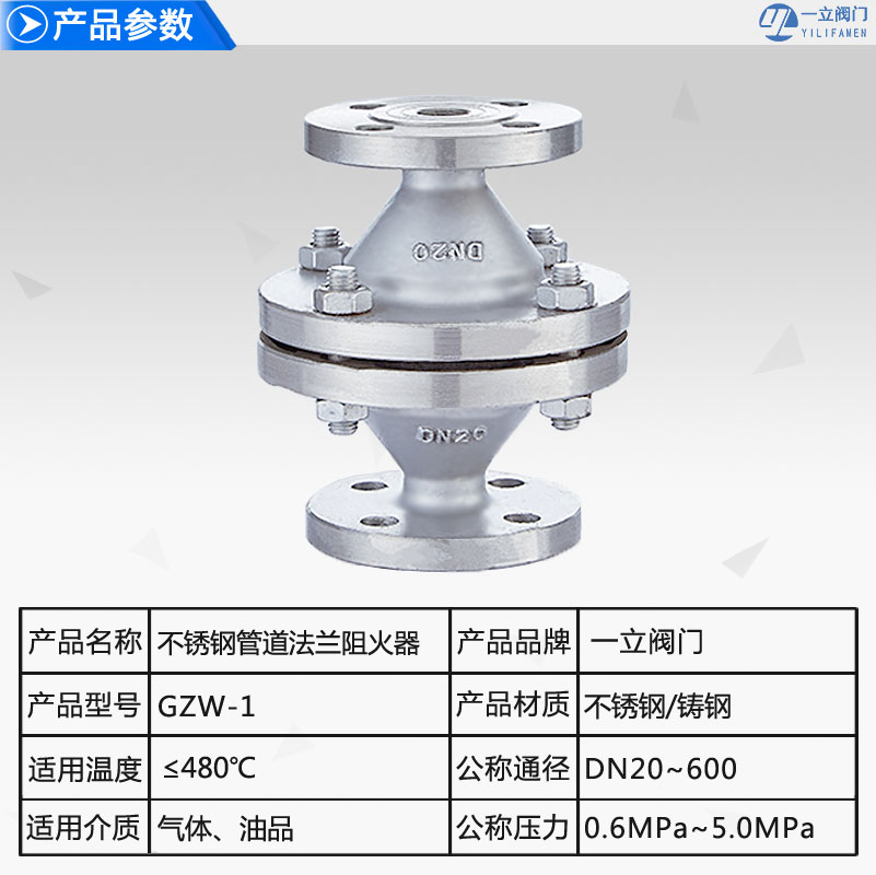 GZW-1不锈钢管道阻火器是用来阻止氢气火焰向外蔓延的装置。管道阻火器由一种能够通过气体的、具有许多细小通道或缝隙的固体材料(阻火元件)所组成,其性能完全符合GB13347-92《石油气体管道阻火器阻火性能和试验方法》的规定。阻火器结构合理,阻火层采用不锈钢材料制造,耐腐蚀易于清洗。壳体采用不锈钢,碳钢等多种材料,可满足各种不同工艺管道的需要。