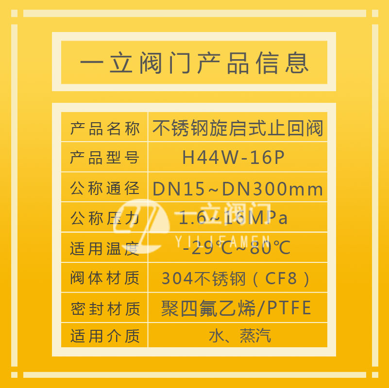 H44W-16P不锈钢旋启式止回阀属于自动阀类,启闭件靠流动介质的力量自行开启 或关闭H44旋启式止回阀选用于公称压力PN1.6~6.4MPa,工作温度-29~550℃的石油、化工、火力电站等各种工况的管路上。适用介质为:水、油品、蒸汽等。