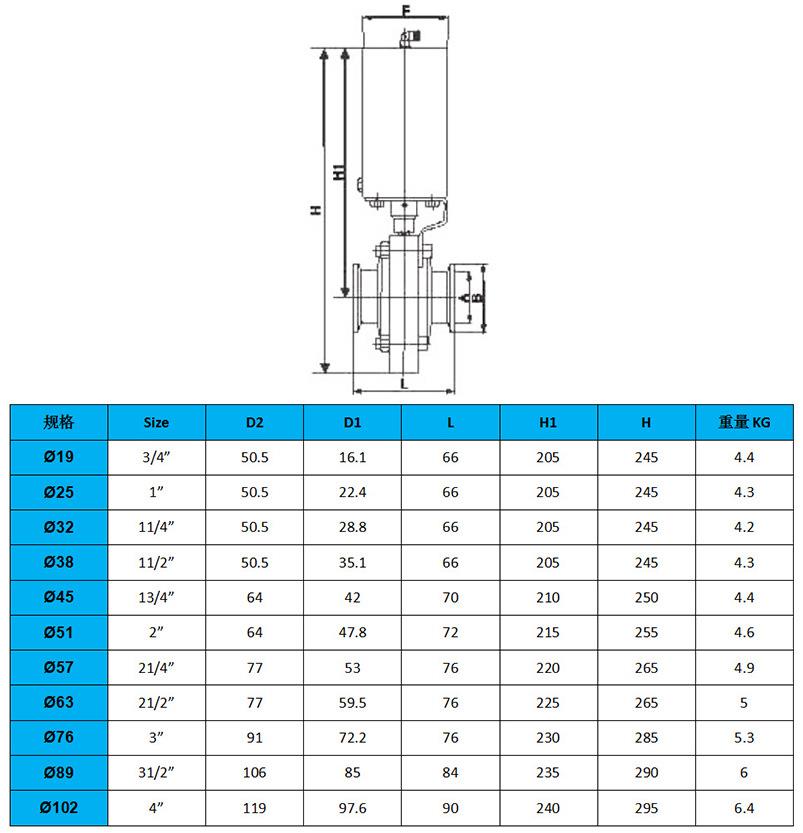 304卫生级不锈钢气动蝶阀