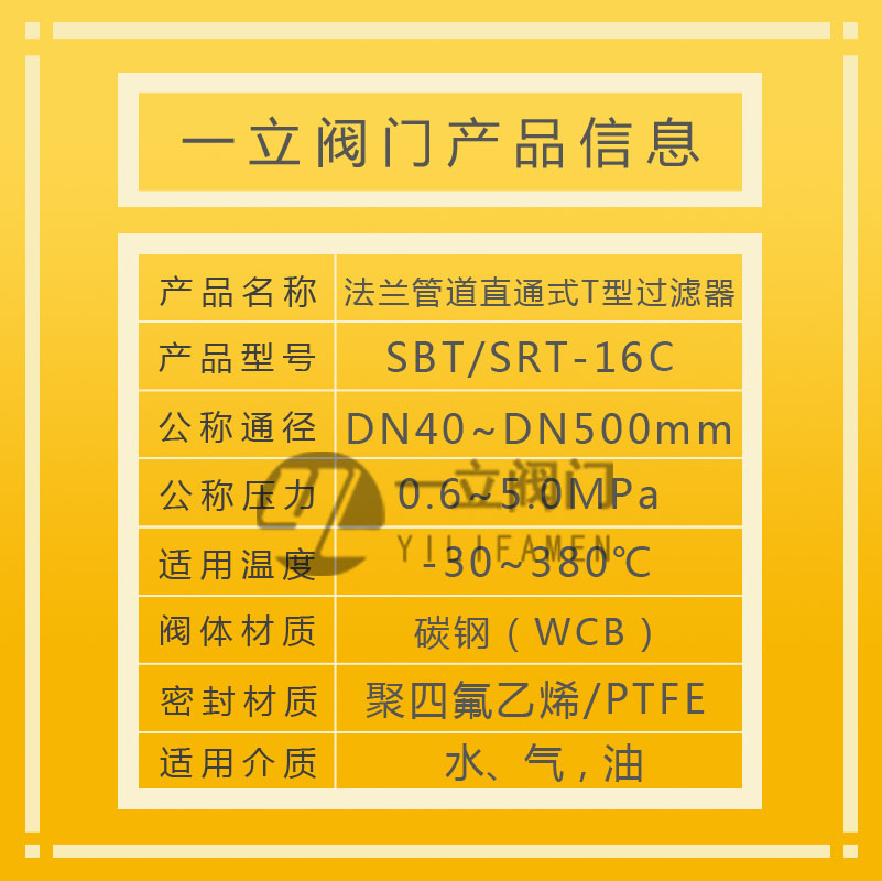咨询:SBT/SRT-16C铸钢法兰管道直通式T型过滤器