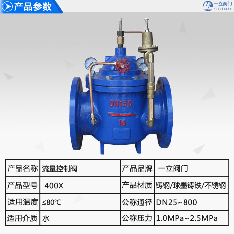流量控制阀利用水力自力控制,不需要其它装置和能源,保养简便,流量控制稳定。本系列阀门产品广泛用于高层建筑、生活区等供水管网系统及城市供水工程。