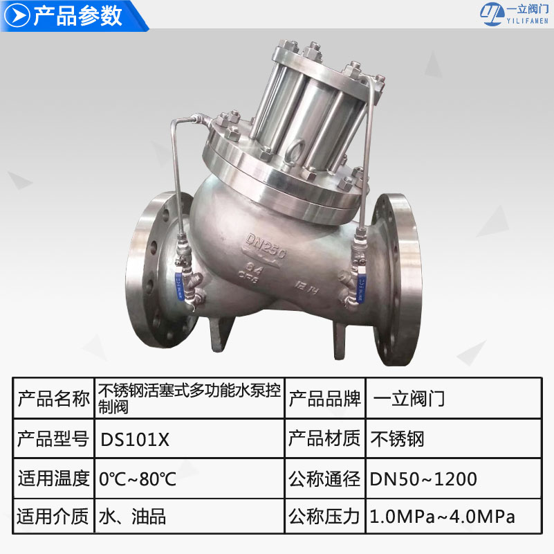 咨询:DS101X不锈钢活塞式多功能水泵控制阀