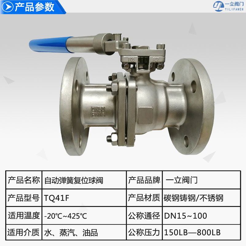 该阀的主要功能是手动打开,人离开后会自动关闭,即松开球阀的手柄,在弹簧的作用下自动反弹复位。也称手动常闭球阀,阀体材质为不锈钢,密封材料聚四氟乙稀。防止人为忘记关闭球阀而造成液体外流或溢出。