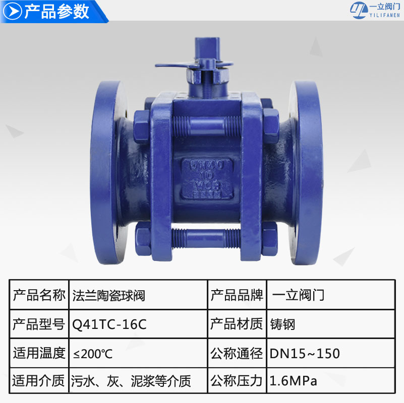 Q41TC陶瓷球阀陶瓷材料的化学稳定性和硬度极高(洛氏硬度HRC90),仅次于金刚石。因此,陶瓷球阀具有极高的耐磨损、耐腐蚀性能,且隔热性好、热膨胀小。球圆精度高、扭矩轻、阻力小、流动顺畅。在含硬度高的颗粒介质和具有腐蚀而高温的介质中,该阀门具有绝对选用优势。适用介质:烟气脱硫、电厂除尘、排灰、排渣、给水处理、蜗炉蒸气、石灰浆液、含颗粒海水输送,陶瓷球阀彻底解决了各特殊工部系统易磨损、强腐蚀需频繁更换的难题,使用寿命长,是钛合金阀和蒙乃尔阀2-4倍。用于高硬度的颗粒介质。