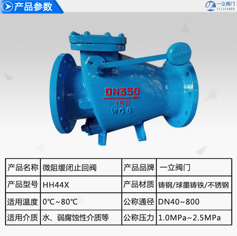 HH44X微阻缓闭止回阀用于给排水管道,安装在水泵出口处用来防止介质逆流和消除破坏性水锤,并能有效地减少阀门关闭水锤压力,可保障管网安全运行.它具有阀瓣轻、开度大、节电效果显著,流体阻力小,水锤消除机构设计新颖,密封性能稳定可靠、耐磨损、使用寿命长、运行平稳、无振动、无噪声等特点。